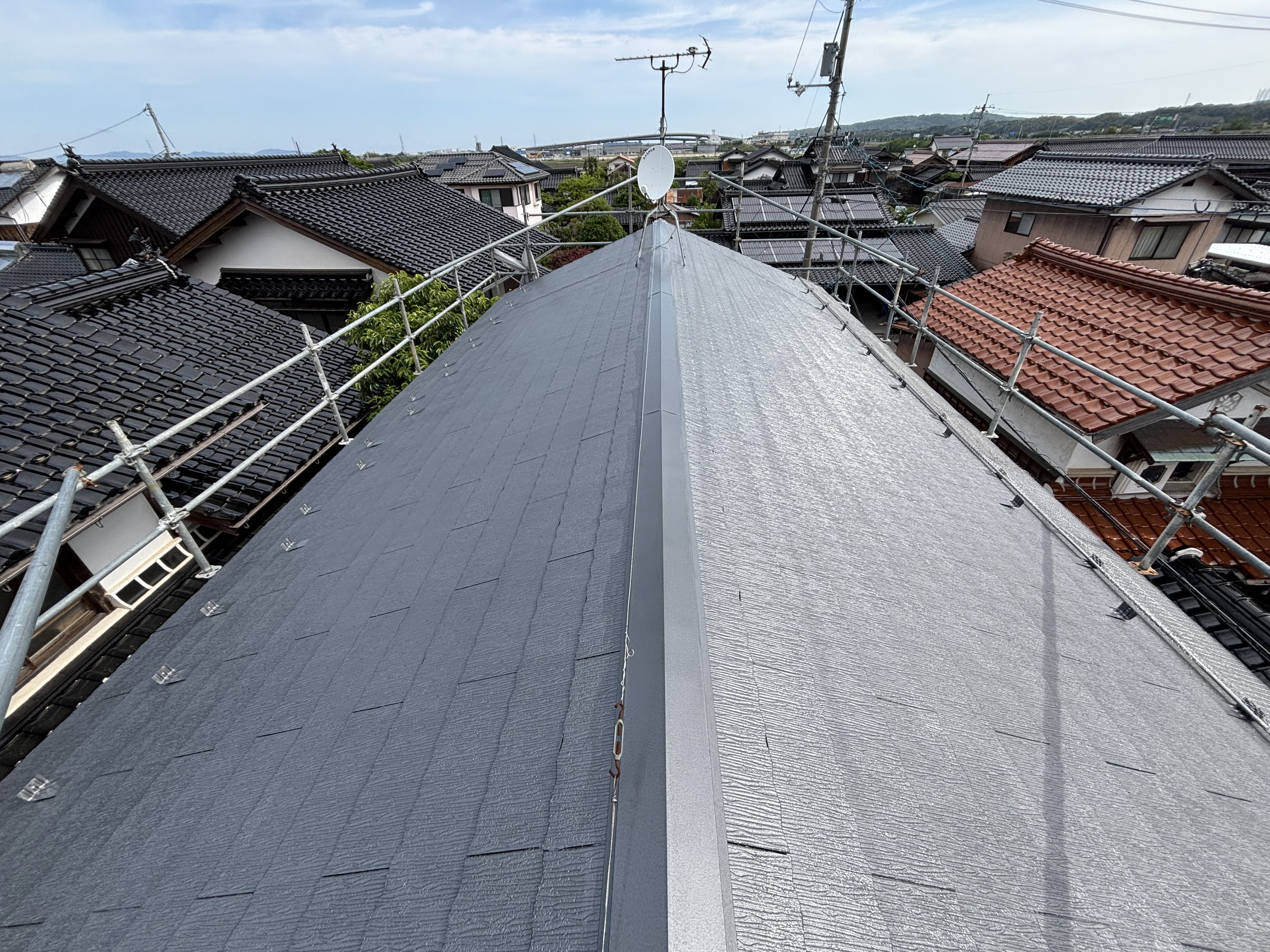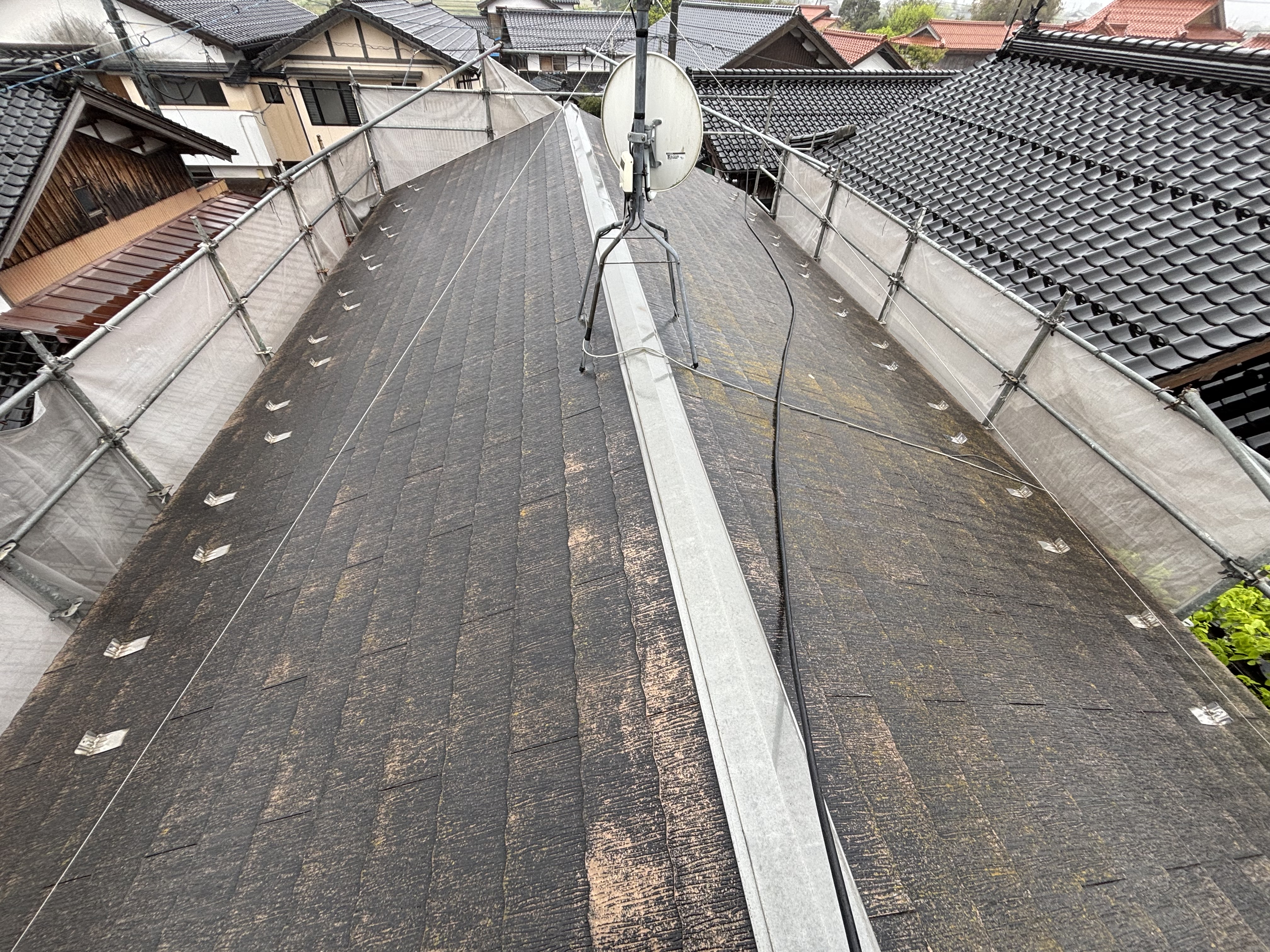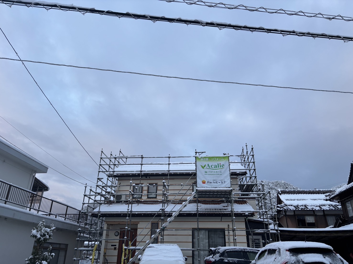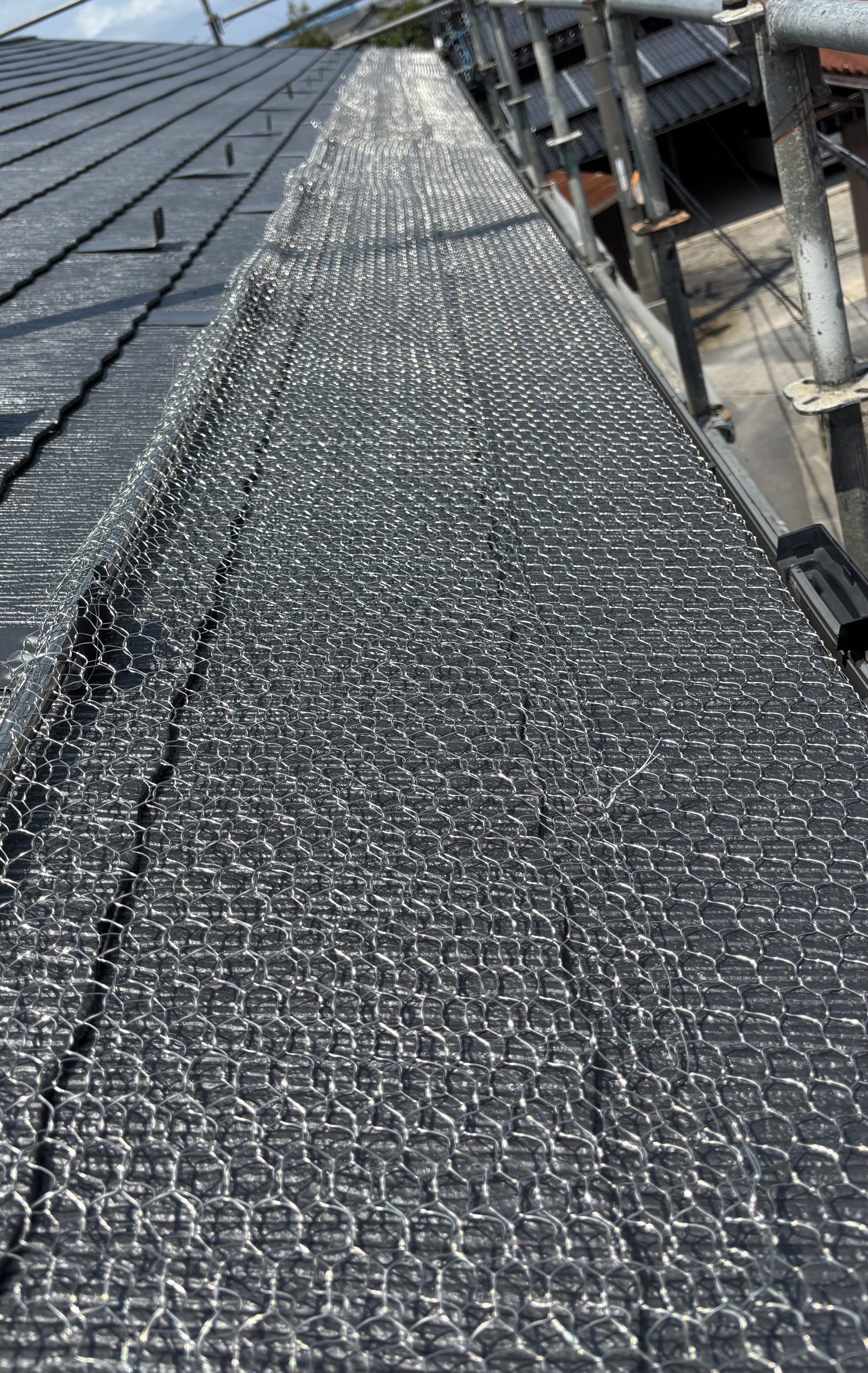 足場があるうちに雪持ちネットも付けたので今後の雪ズリの心配がないですね。
